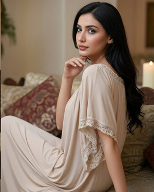 مناسب للنوم والبيت اليومي، خصوصاً للّي تحب الراحة مع لمسة أناقة.