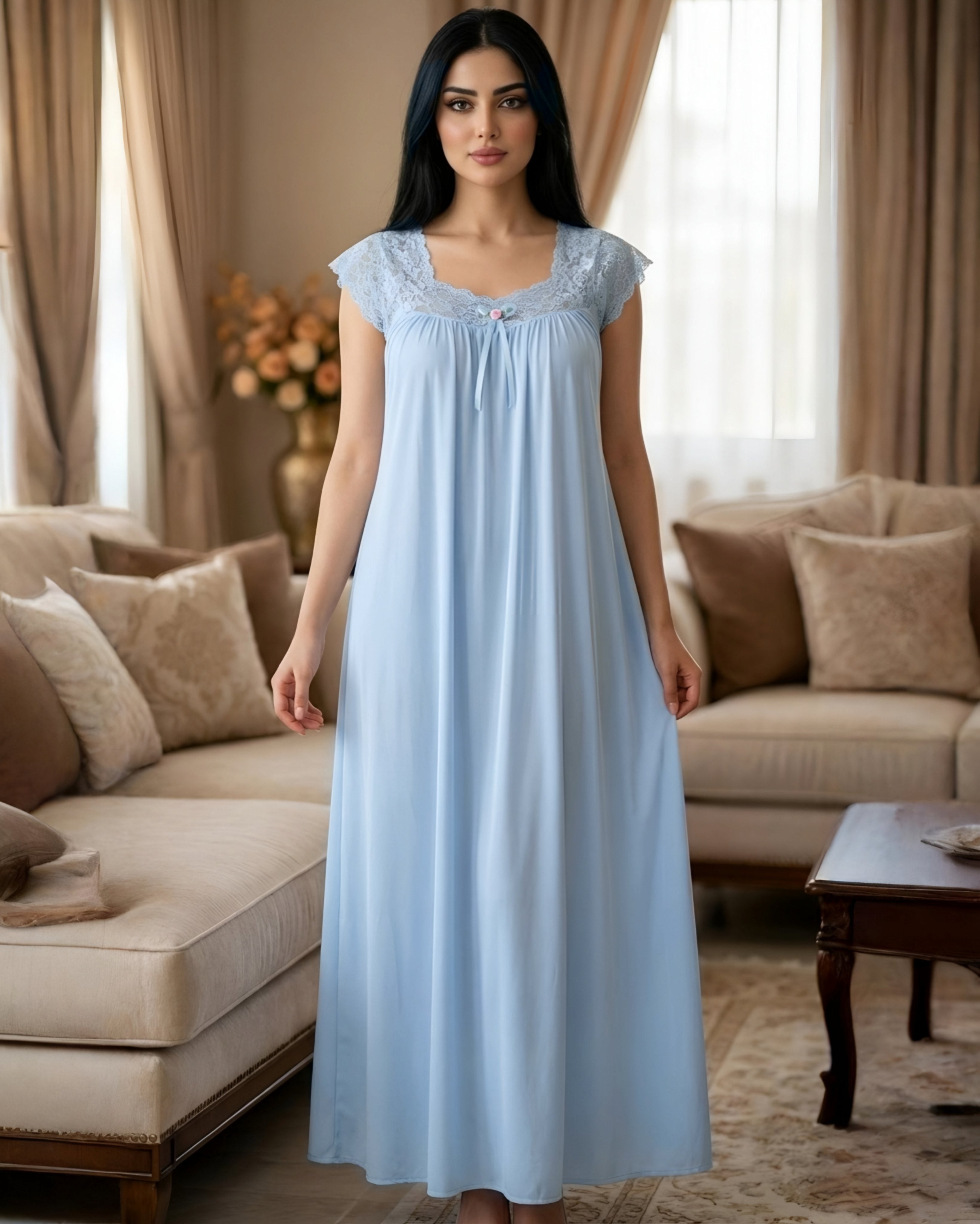 بتفاصيل تزيينية ناعمة على الصدر والأكمام بملمس قطني مريح، تمنح إطلالة أنثوية راقية .