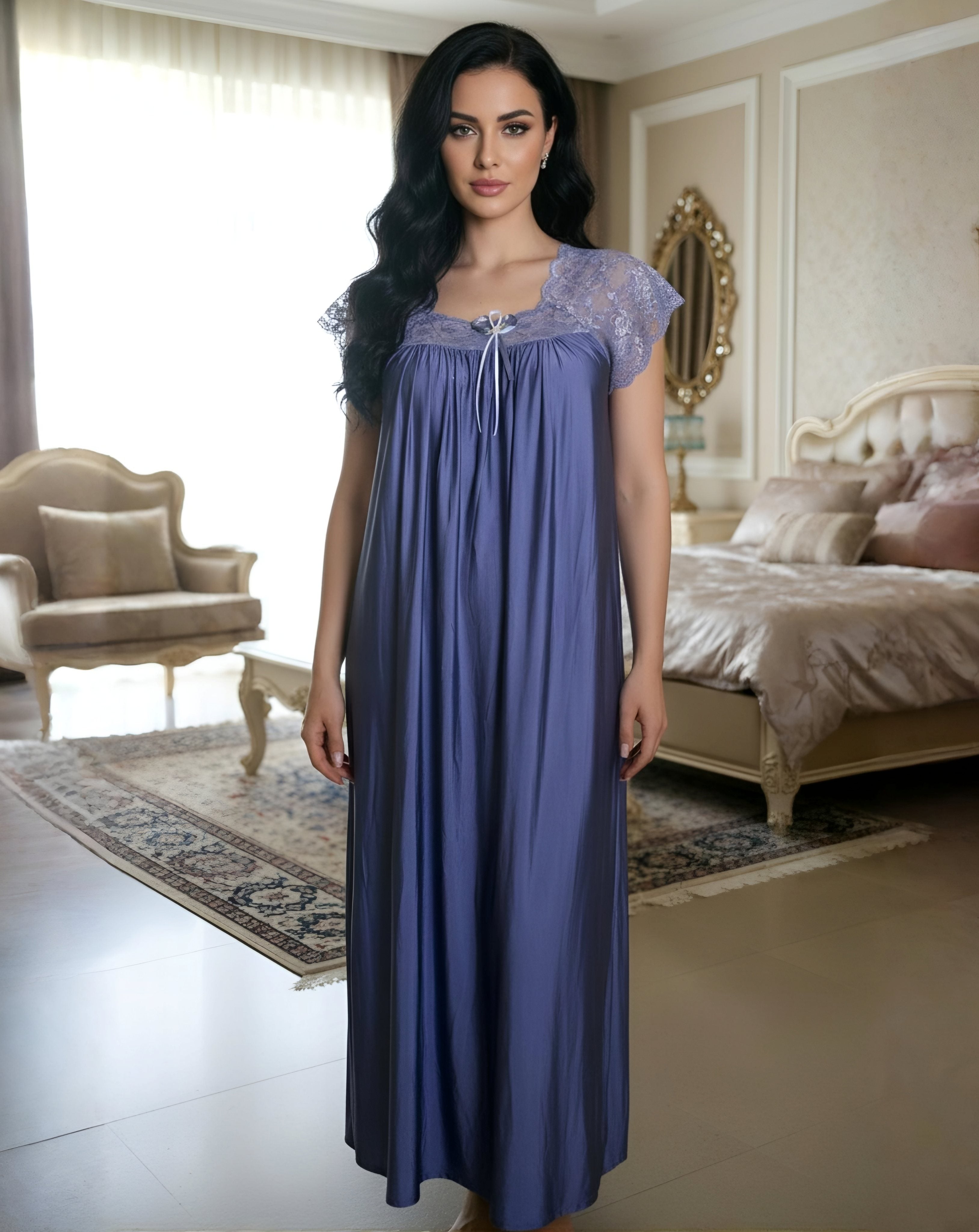 مصنوع من خامة رويال كومفورت سيلك بلمس انسيابي ونعومة مريحة للبيت والاسترخاء اليومي.