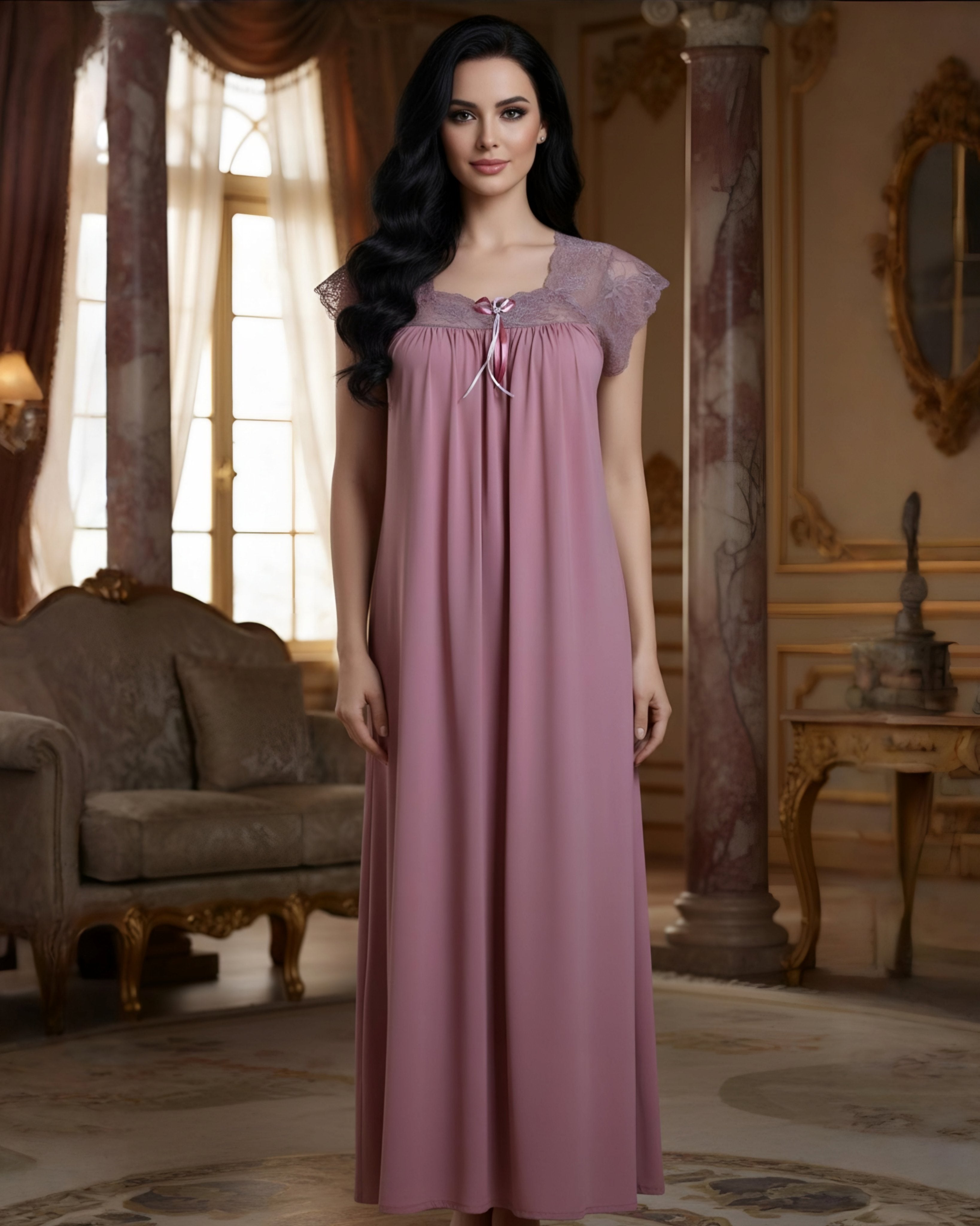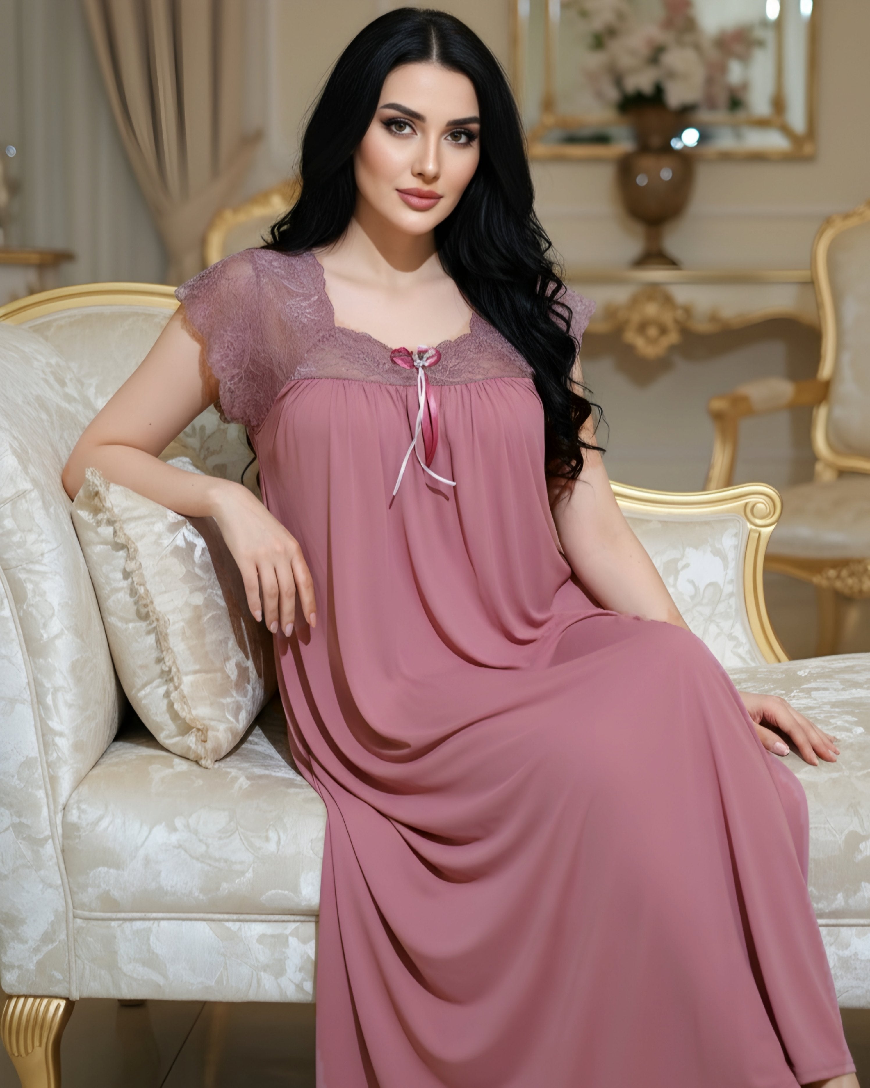 • الخامة: رويال كومفورت سيلك + دانتيل قطن مطرز