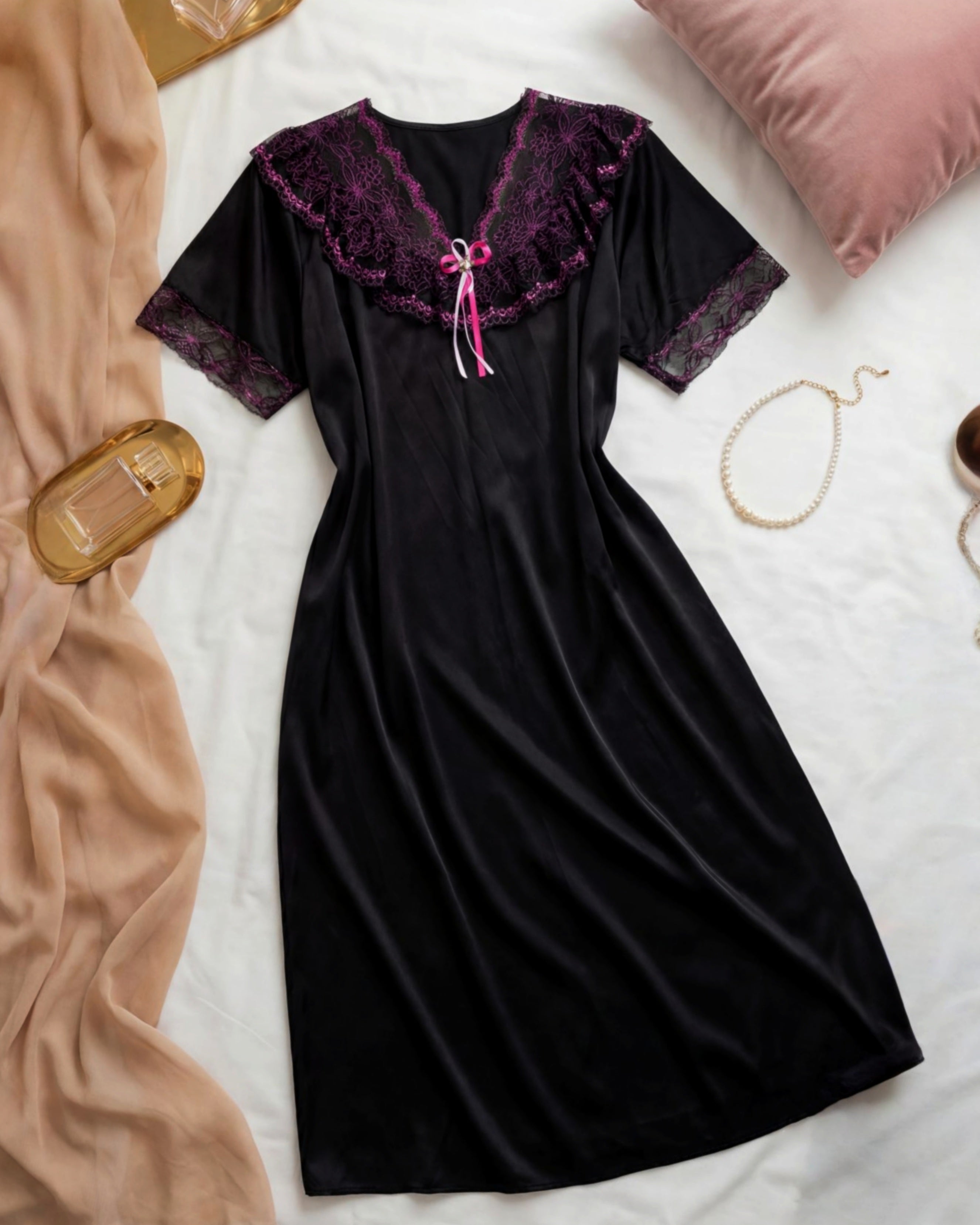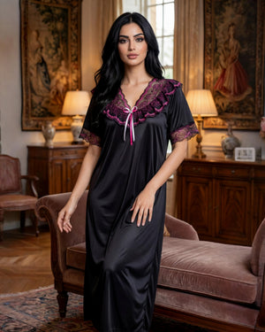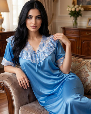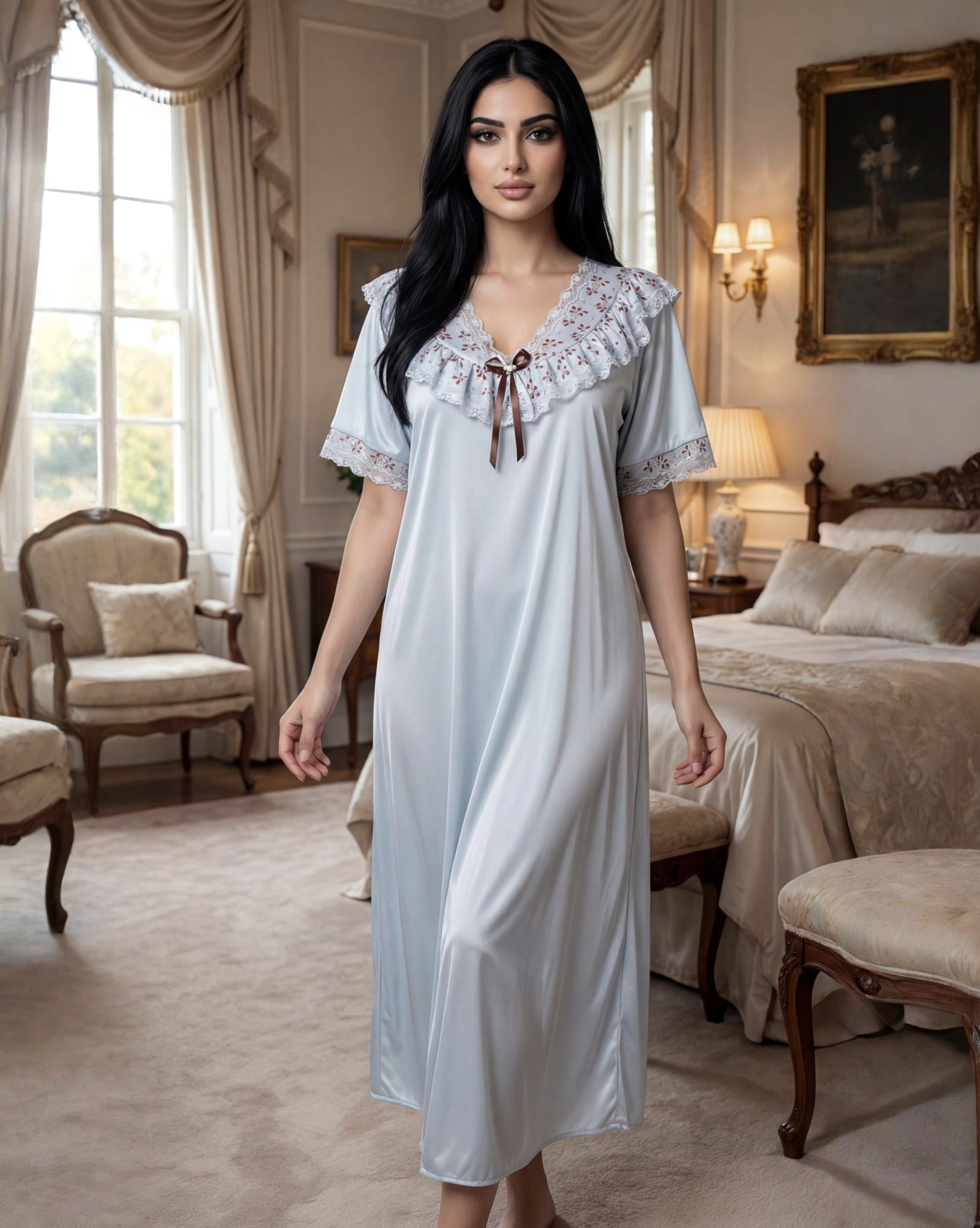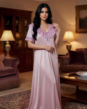 قميص نوم طويل بتصميم انسيابي من مجموعة الكومفورت دريس، يجمع بين الراحة المدروسة والأناقة الهادئة.