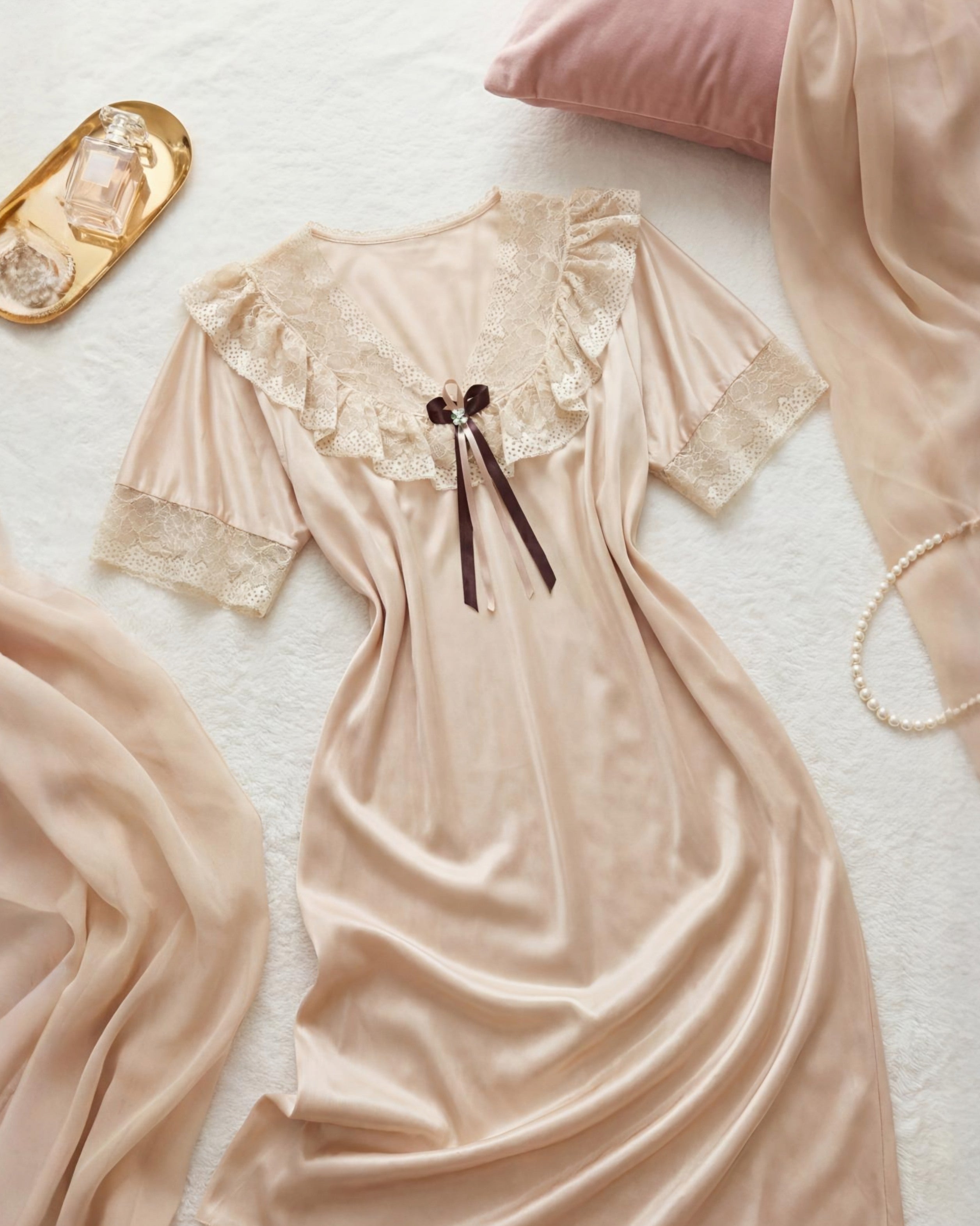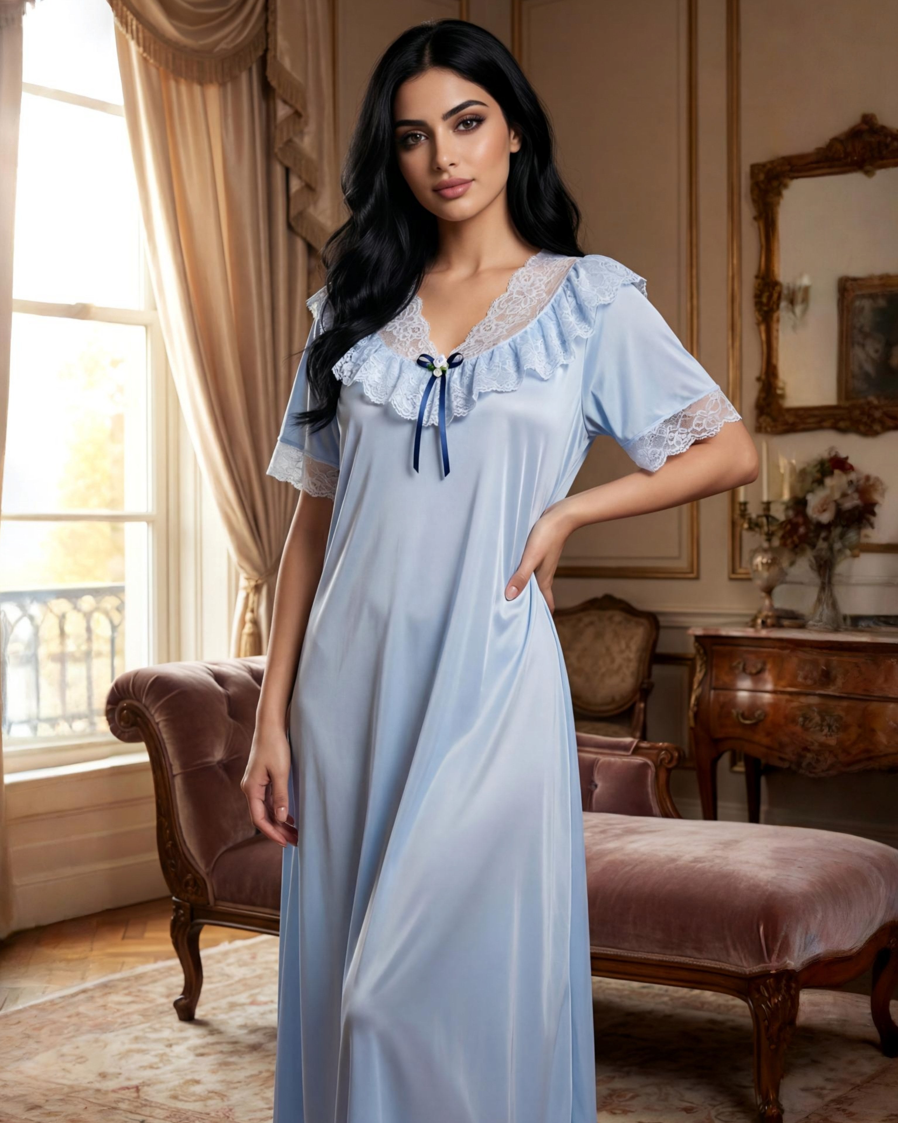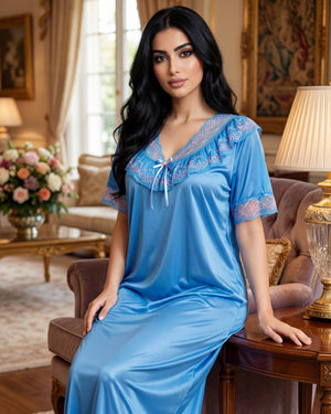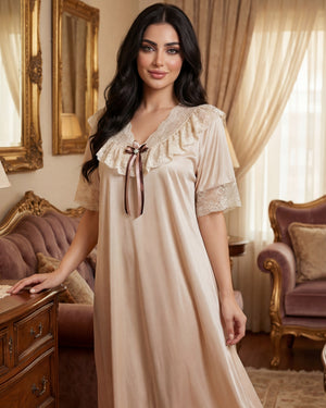 قميص نوم طويل بتصميم انسيابي من مجموعة الكومفورت دريس، يجمع بين الراحة المدروسة والأناقة الهادئة.